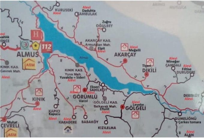 Tokat'ın Almus ilçesinin Alevi köylerinin Sağlık Bakanlığı'na ait bir belgede işaretlenmiş olduğu ortaya çıktı. Konuyla ilgili haritayı paylaşan Alevi Dernekleri Federasyonu (ADFE) Genel Başkanı Celal Fırat "Sağlık Bakanlığı'nın logosunun olduğu haritada Alevilerin yaşadığı köylerin yanına kırmızı harflerle ''Alevi'' yazıldığı görülüyor" dedi.