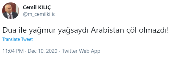 "Dua ile yağmur yağsaydı Arabistan çöl olmazdı!"
