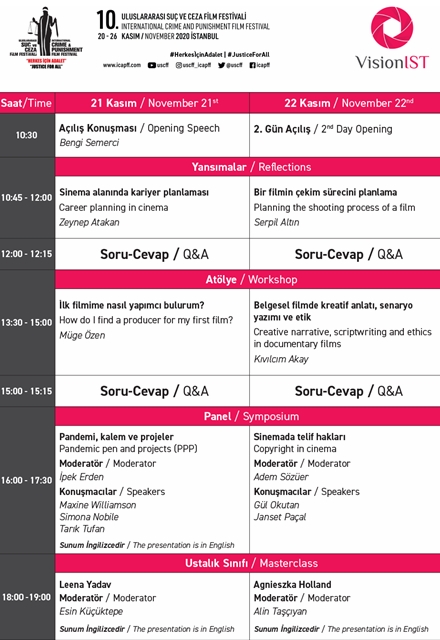 Yansımalar, Atölye, Panel ve Ustalık Sınıfından oluşan VisionIST programı 10. Uluslararası Suç ve Ceza Film Festivali yönetimi tarafından açıklandı. Endüstri Günleri "VisionIST" 21-22 Kasım 2020 tarihlerinde çevrimiçi gerçekleştirilecek.