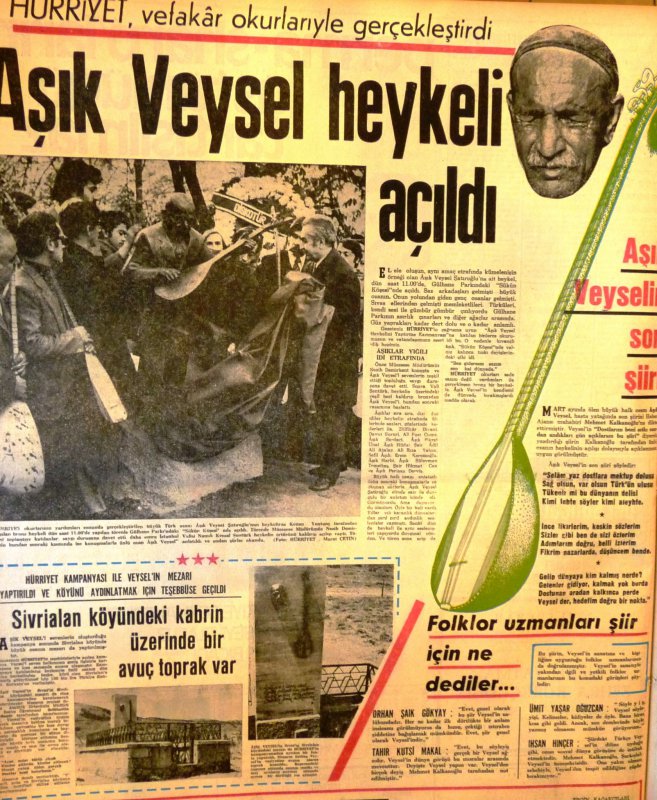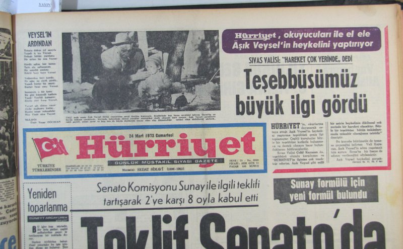 O gün, Hürriyet Gazetesi, Sivas’a Aşık Veysel Heykeli yaptırmak için bir kampanya başlattı. Heykeli Türkiye'nin ilk heykeltıraşlarından Kenan Yontunç yapacaktı. Bir gün sonraki Hürriyet gazetesinin sürmanşeti bu konuya ayrılmıştı. Renkli dişi başlık içinde gazetenin okuyucularla el ele Âşık Veysel heykeli yaptırdığı belirtilirken, altında bir ara başlıkta “Sivas Valisi ‘Hareket Çok Yerinde’ dedi” ibaresi yer alıyordu.