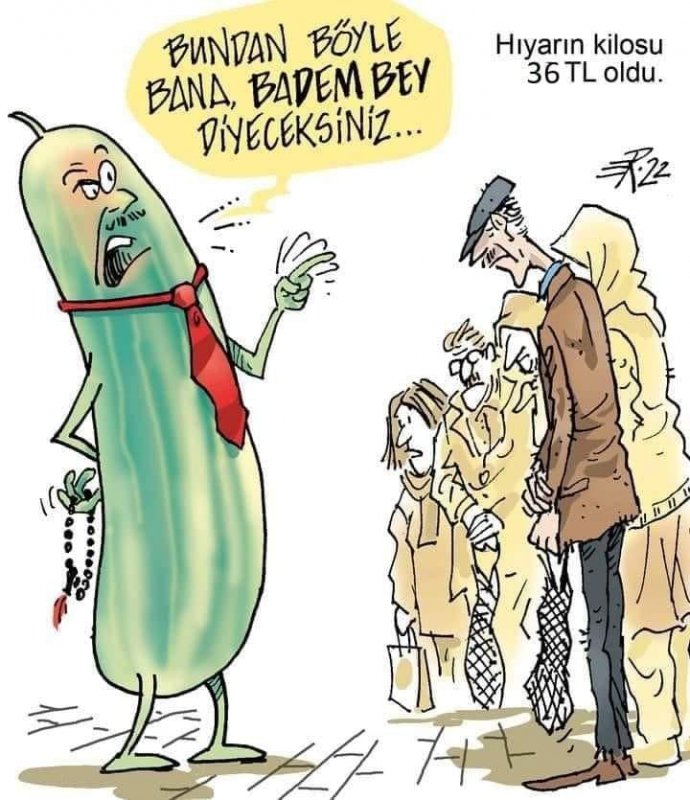 Dünkü yazımda “Bu nedir?” diye sormuştum. Sonra dayanamayıp bir hıyar destanı ve fotoğrafla yanıtını ben vermiştim. Ama gelen yanıtların birinde sanatçı kardeşim Şenay Bostancı Emre, “Sanırım ona artık badem bey diye hitap edeceğiz” demişti. Gül Kuday kardeşim de yorum niyetine bir karikatür eklemişti. Karikatürist meslektaşım beni bağışlasın, izni olmadan aşağıda paylaştım. Ancak badem bey hazretlerinin elindeki tesbih beni şeytani algılara sürükledi.