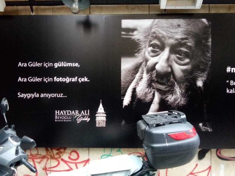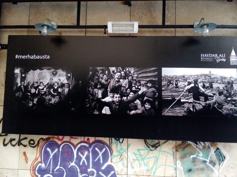 "Ara cafe" önündeyim ve masaların kalktığı alanın duvarına bir kaç büyük pano asılmış ki içinde Ara Güler'in bildiğimiz fotoğrafları var.