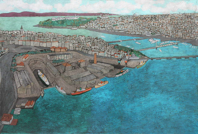 Mavinin peşinde İstanbul gülümsemesini Kızkulesi kadar Haliç kıyılarında rüzgara bırakan bir ressam olması değil!