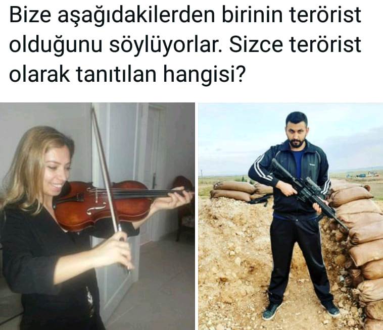 Katilin silahlı fotoğrafı ile Deniz Poyraz’ın keman çalan, Nazım Hikmet’in sözlerinin yer aldığı fotoğrafları yan yana koyup karşılaştırmak, hatta “birini seç” demek de nedir!