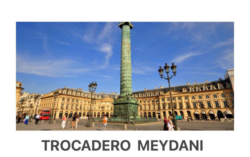 Trocadero Meydanı;Eyfel Kulesi ve Seine Nehri‘nin hemen yanında bulunan bölge.Eyfel Kulesi muhteşem manzarasını bu meydanda veriyor.Bölgedeki en önemli yapı Palais de Chaillot’tur. Trocadero Meydanı’nda çeşitli sokak sanatçıların gösterilerini izleyebilir, yılın belli zamanında ev sahipliği yaptığı eğlencelere, organizasyonlara katılabilirsiniz.