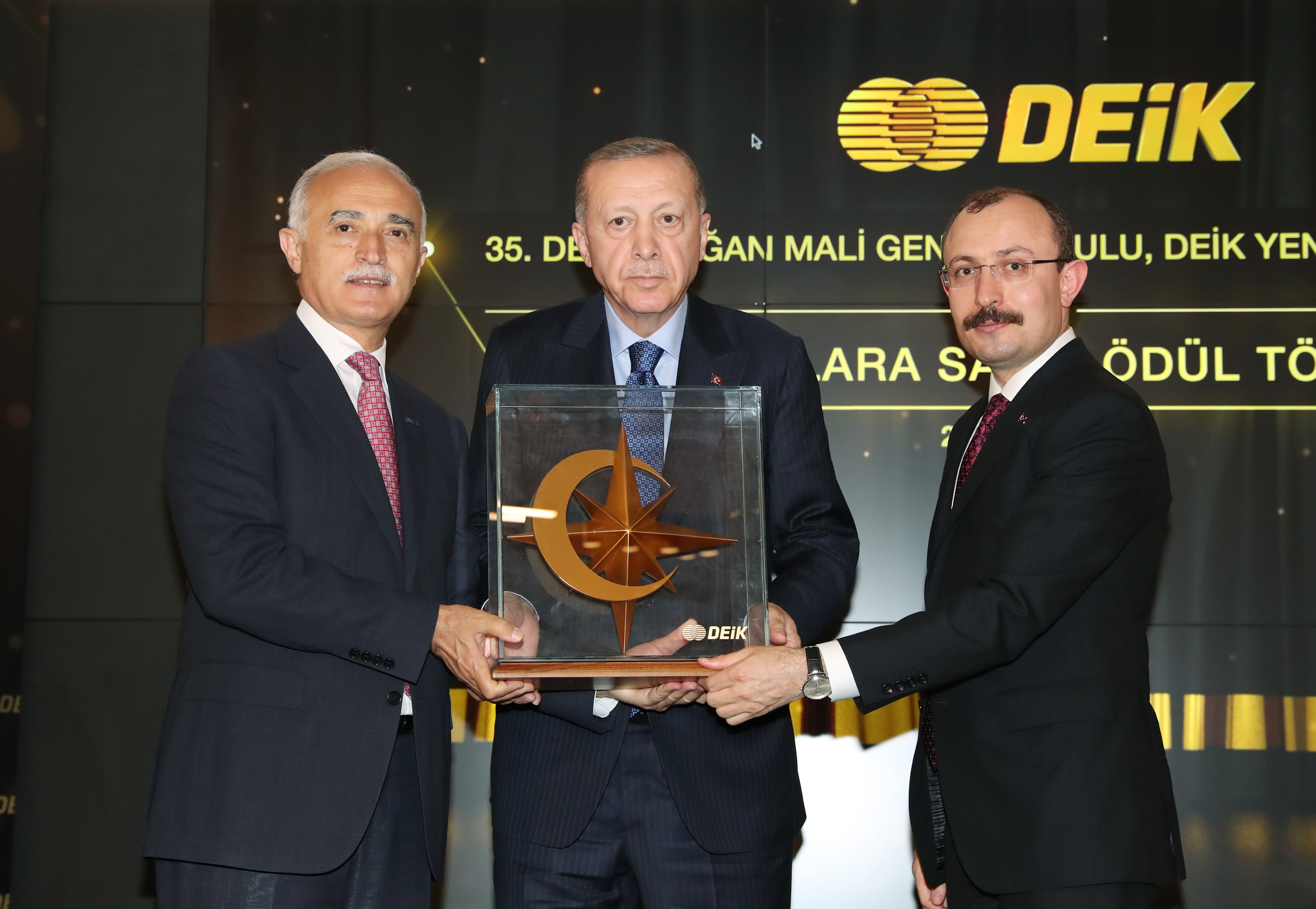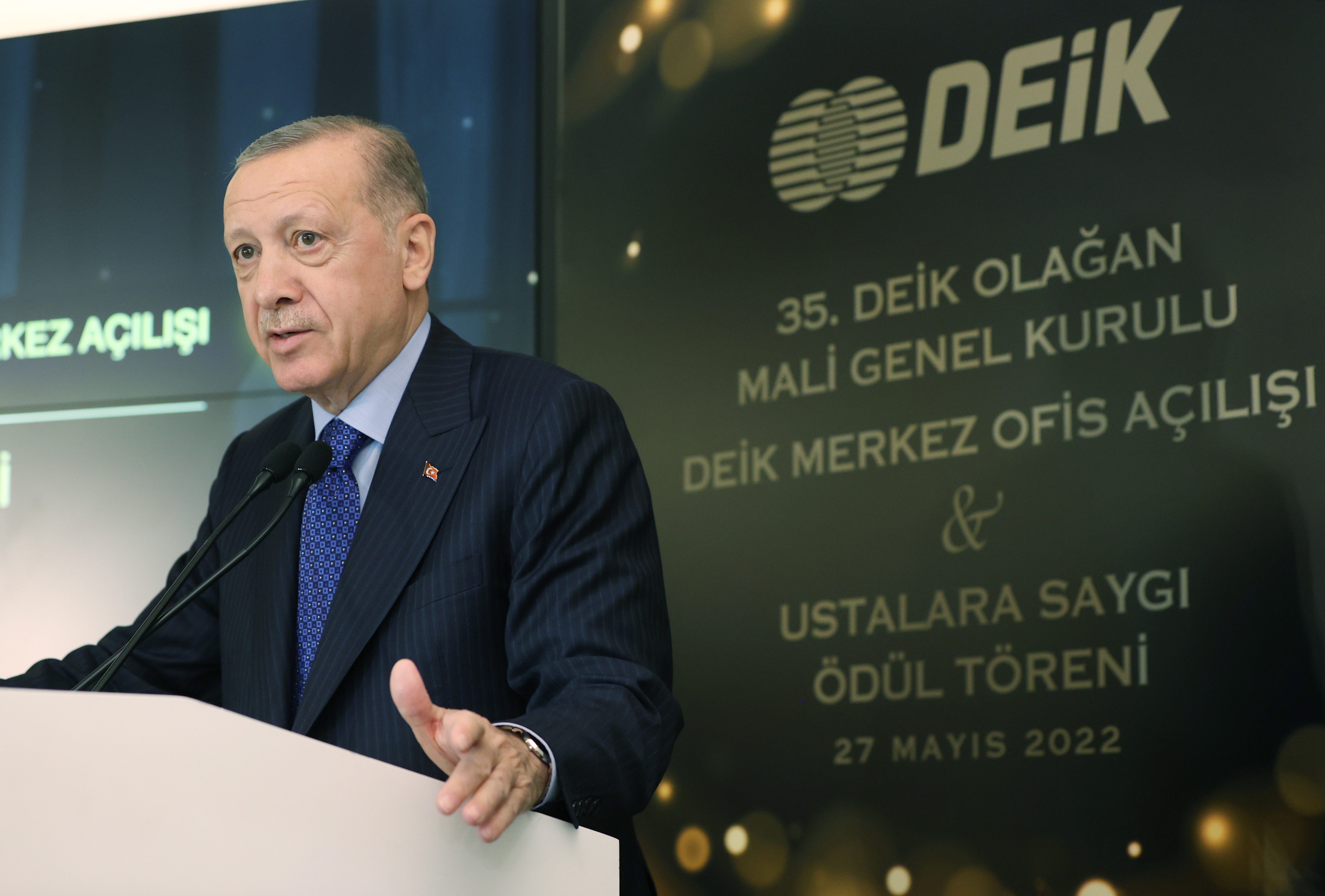 Cumhurbaşkanı Recep Tayyip Erdoğan, Dış Ekonomik İlişkiler Kurulu (DEİK) Merkez Ofisi Açılışı ve Ustalara Saygı Ödül Töreni'ne katıldı.