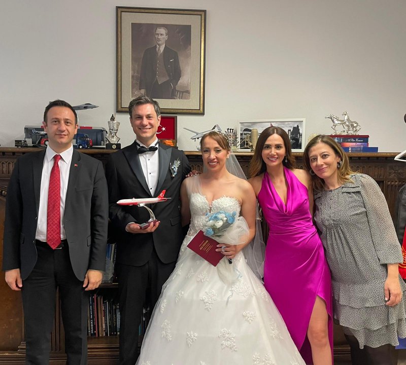 Konsolosluk Şubesi Sorumlumuz Başkatip Sayın Ahmet Çelik bu hafta Büyükelçiliğimizde Sayın Pelin İncel ve Sayın Bahadır Toplugül’ün nikâhlarını kıydı. Tören sonrasında Başkatip Çelik ikisi de pilot olan gelin ve damadı tebrik ederek ömür boyu mutluluklar diledi.